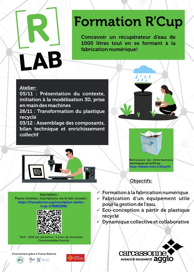 Dans le cadre de sa démarche en faveur de la transition écologique et de l’économie circulaire, le Fablab de Carcassonne Agglo propose de lancer le projet R’Cup, un dispositif innovant alliant gestion durable de la ressource en eau et montée en compétences des participants.